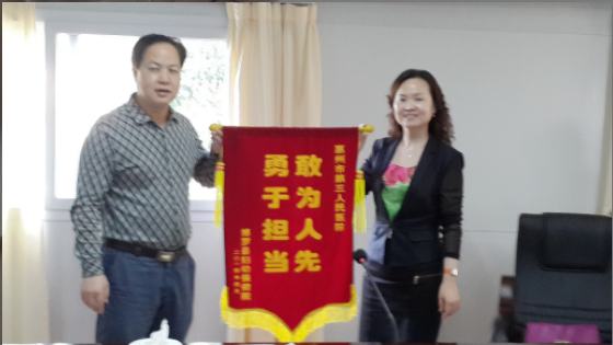 博羅婦幼保健院王筱紅院長(zhǎng)(右)向惠州市第三人民醫(yī)院馬顯力院長(zhǎng)(左)贈(zèng)送錦旗
