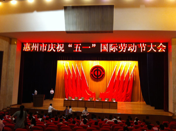 2014年4月29日上午,惠州市總工會(huì)在江北會(huì)議中心召開慶祝我市“五一”勞動(dòng)節(jié)大會(huì),市直各單位、各縣(區(qū))有關(guān)負(fù)責(zé)人及來自惠州各條戰(zhàn)線的干部職工等600多人參加了大會(huì)。大會(huì)由市人大常委會(huì)副主任、市總工會(huì)主席朱挺青主持。