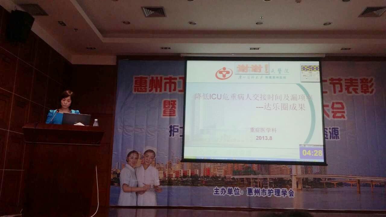 會(huì)上各醫(yī)療衛(wèi)生單位一一進(jìn)行了“品管圈”經(jīng)驗(yàn)分享,我院重癥醫(yī)學(xué)科的《降低ICU危重病人交接時(shí)間及漏項(xiàng)率》榮獲本次分享大會(huì)優(yōu)秀獎(jiǎng),展示了三院護(hù)理隊(duì)伍在護(hù)理工作中的成績(jī),得到大家的認(rèn)可。(護(hù)理部 楊歡)