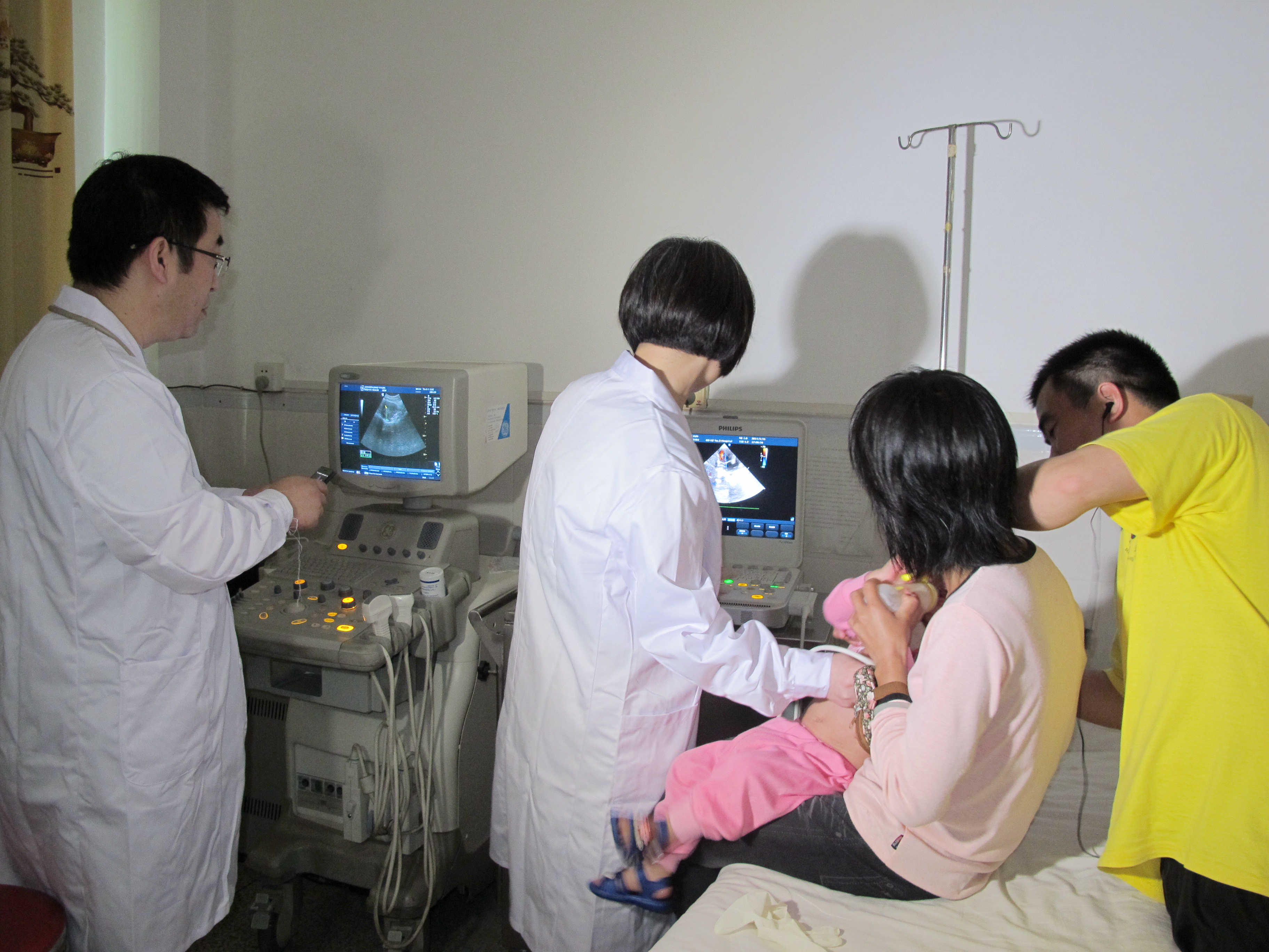 2014年5月21日下午,我院心血管醫(yī)學(xué)中心心胸外科鐘衛(wèi)權(quán)主任和劉凌博士帶隊(duì),攜帶心臟彩超專業(yè)設(shè)備來(lái)到博羅縣公莊鎮(zhèn)衛(wèi)生院,為轄區(qū)內(nèi)5名先心病患兒進(jìn)一步細(xì)致心臟彩超檢查(年齡最小不到一歲,最大有六歲多)。