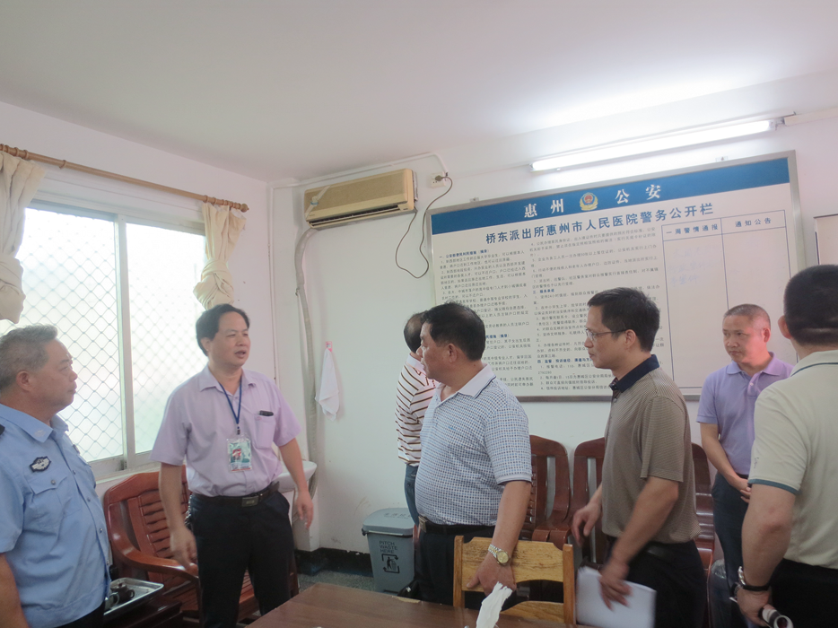 6月10日上午,惠州市平安辦朱良根主任一行對(duì)我院平安醫(yī)院建設(shè)情況進(jìn)行調(diào)研檢查,惠城區(qū)平安辦、區(qū)衛(wèi)計(jì)委、我院馬顯力院長(zhǎng)等班子成員及相關(guān)職能部門負(fù)責(zé)人參加了調(diào)研檢查。