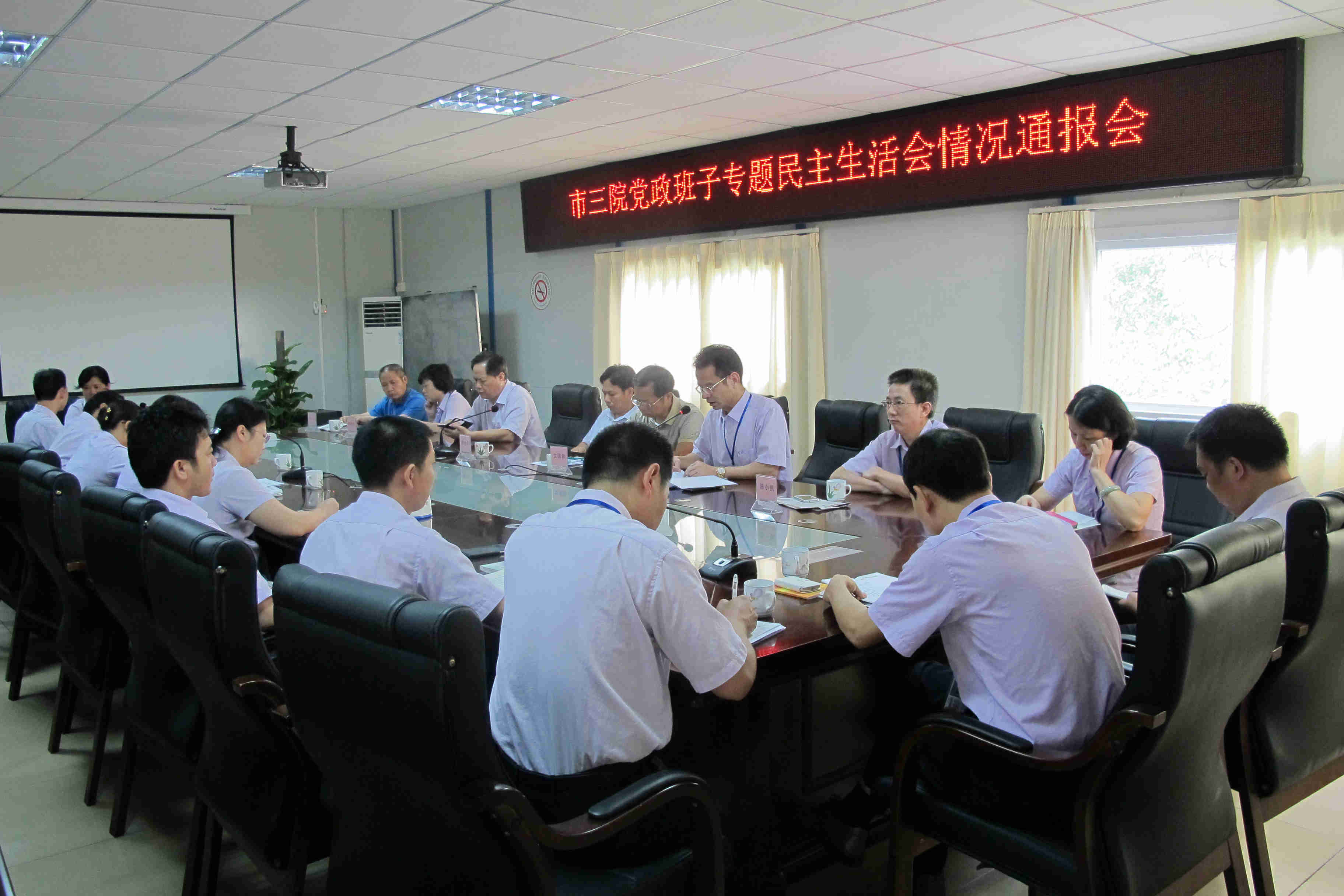 8月6日上午,我院召開專題民主生活會情況通報會,主要通報我院黨委領(lǐng)導(dǎo)班子專題民主生活會有關(guān)情況。區(qū)委第十四督導(dǎo)組文國新組長,區(qū)衛(wèi)計局黨委書記、局長鄒忠平同志等上級領(lǐng)導(dǎo)參加了會議,醫(yī)院黨委班子成員、各支部書記、職能科主任聽取了通報。