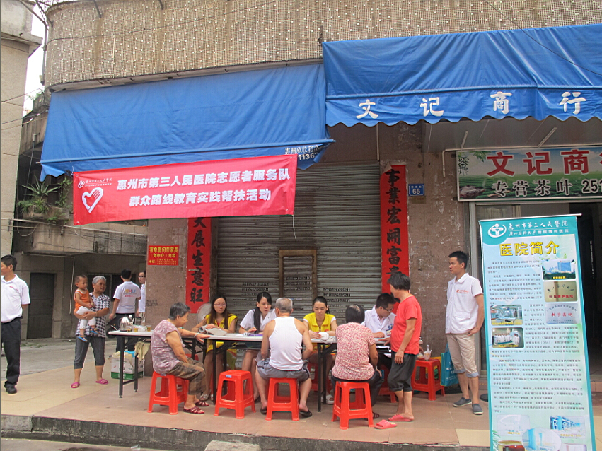 816上午,我院志愿者團(tuán)隊(duì)攜手金鑰匙義工協(xié)會(huì)到惠城區(qū)河南岸惠南小區(qū)開展群眾路線教育實(shí)踐義診幫扶活動(dòng)。群眾路線教育實(shí)踐義診幫扶活動(dòng)旨在通過義診等活動(dòng)形式來(lái)幫扶社區(qū)居民,為居民傳播基本的醫(yī)療知識(shí),提倡社會(huì)志愿服務(wù)行為,為社會(huì)傳遞正能量。
