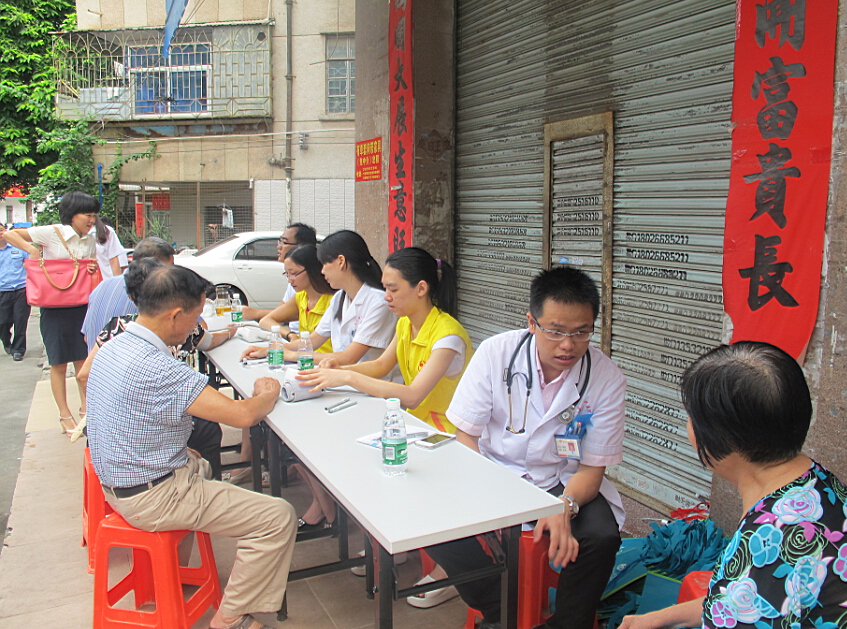 當(dāng)日,我院組織了以診療中老年疾病為主的綜合病區(qū)許桂煌主治醫(yī)師、呼吸內(nèi)科揭祥醫(yī)生及兩名專業(yè)護(hù)士到場(chǎng),為現(xiàn)場(chǎng)居民提供專業(yè)醫(yī)療咨詢和疾病診斷。金鑰匙義工協(xié)會(huì)也組織了十名義工到場(chǎng)積極配合協(xié)助活動(dòng)開展。