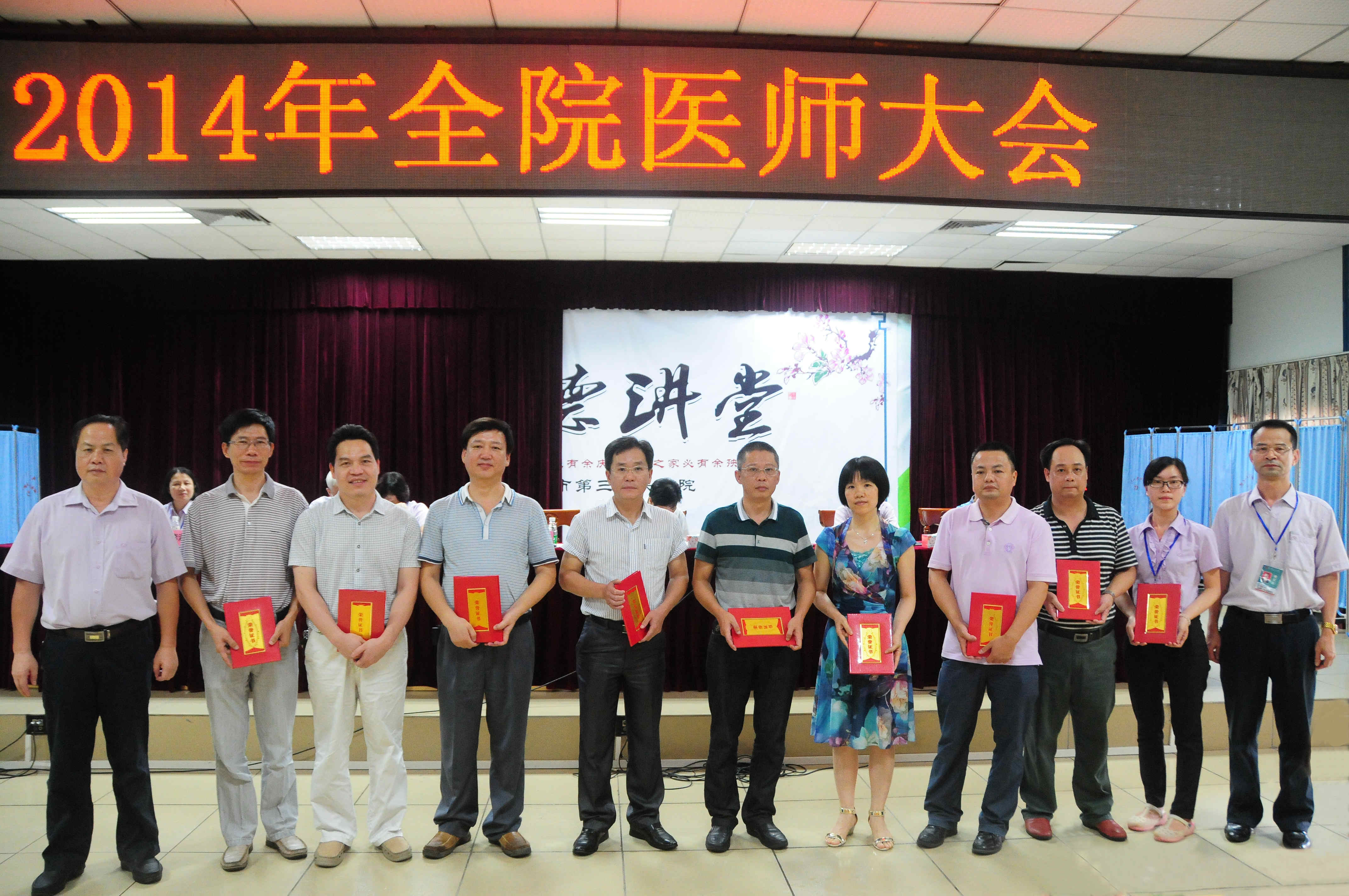 2014年8月13日下午,我院在工地多功能會議室召開2014年度醫(yī)師大會, 會議首先對2013年度惠州市第三人民醫(yī)院“優(yōu)秀醫(yī)生”和“白求恩式醫(yī)生”進(jìn)行了通報表彰。隨后,會議圍繞“加強(qiáng)醫(yī)療質(zhì)量內(nèi)涵與安全”為主題,向全院醫(yī)師進(jìn)行了動員宣傳。會上,我院肖純副院長、馬顯力院長和惠城區(qū)衛(wèi)計局鄒忠平局長均先后作了重要講話,反復(fù)強(qiáng)調(diào)醫(yī)療質(zhì)量是醫(yī)院的生命線,必須狠抓不懈,要求每一位醫(yī)務(wù)人員充分認(rèn)識到加強(qiáng)醫(yī)療質(zhì)量安全的重要性和必要性,在思想上牢固的樹立“質(zhì)量第一”的服務(wù)意識。
