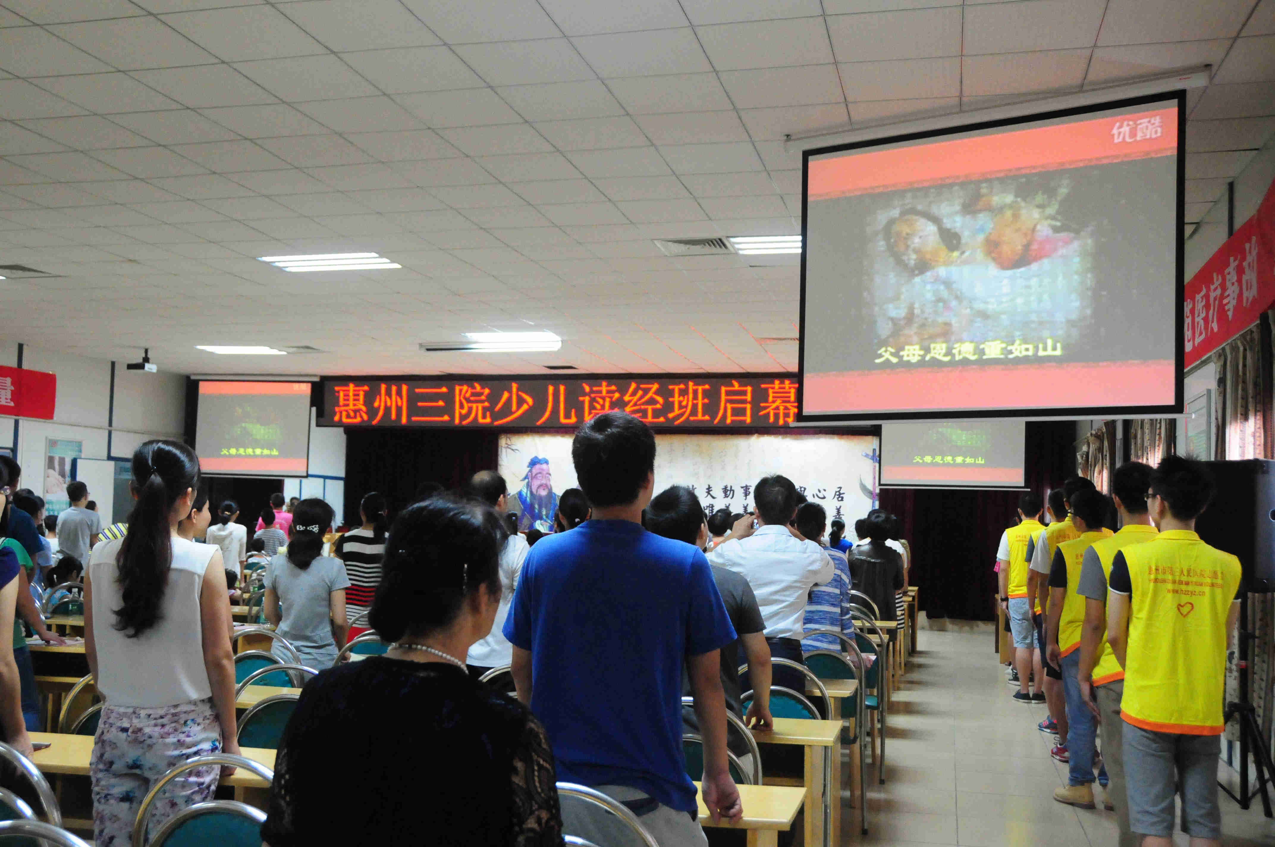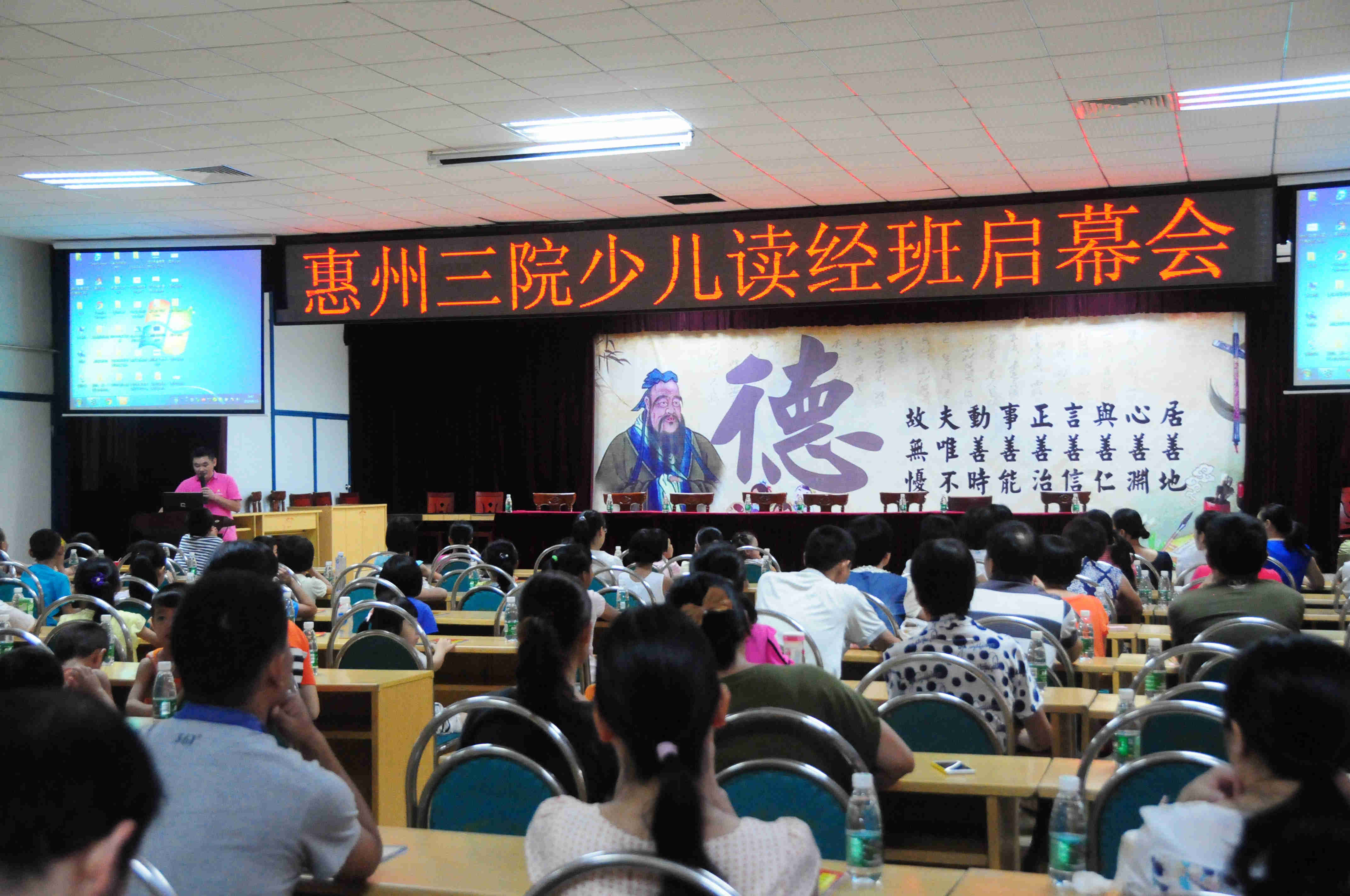 2014823上午,我院工會(huì)與惠州“微笑愛(ài)心扶老”助學(xué)會(huì)聯(lián)合開(kāi)辦的“惠州三院少兒讀經(jīng)班”在我院多功能會(huì)議室舉行啟幕儀式,同時(shí)開(kāi)展了體驗(yàn)課。“微笑愛(ài)心扶老”助學(xué)會(huì)成員、我院職工及其子女、我院工會(huì)委員、我院志愿者以及惠州電視臺(tái)及媒體朋友們等近百人到場(chǎng)參加了“惠州三院少兒讀經(jīng)班”的開(kāi)幕儀式。