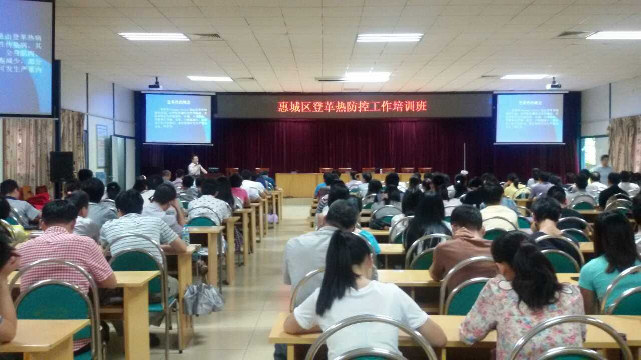 近期,我省廣州市發(fā)生由蚊子傳播登革熱疫情,報(bào)告病例達(dá)1000多例,存在向周邊城市擴(kuò)散的可能。當(dāng)前我省氣候適宜蚊媒滋生,蚊媒密度監(jiān)測(cè)數(shù)據(jù)創(chuàng)2006年以來(lái)新高,登革熱疫情防控形勢(shì)相當(dāng)嚴(yán)峻,由于人群普遍易感,為做好疫情防控,做到“早發(fā)現(xiàn)、早報(bào)告、早隔離、早治療”,根據(jù)上級(jí)主管部門和院領(lǐng)導(dǎo)的指示,在區(qū)衛(wèi)計(jì)局組織下,2014916日下午150017:00,我院感染內(nèi)科利旭輝主任在工地多功能會(huì)議室為大家進(jìn)行了關(guān)于登革熱疫情防治相關(guān)知識(shí)的培訓(xùn)。惠城區(qū)其他醫(yī)療機(jī)構(gòu)負(fù)責(zé)傳染病管理的分管理領(lǐng)導(dǎo)及傳染病防控人員以及本院醫(yī)務(wù)人員共計(jì)227人參加了此次培訓(xùn)。