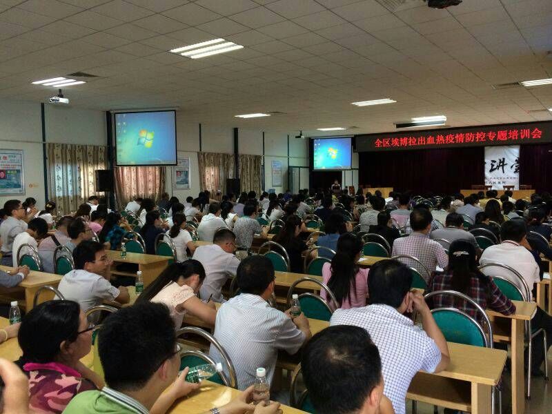20141031日下午,我院根據(jù)上級衛(wèi)生行政部門相關(guān)文件精神要求,在醫(yī)院工地多功能會議室再次組織醫(yī)務(wù)人員埃博拉出血熱疫情防控專題培訓(xùn)。本次培訓(xùn)重點(diǎn)在對病例監(jiān)測、發(fā)現(xiàn)、報(bào)告以及醫(yī)生、護(hù)士、后勤保潔、運(yùn)送、救護(hù)車司機(jī)等全體醫(yī)務(wù)工作人員進(jìn)行院內(nèi)感染預(yù)防控制措施,并現(xiàn)場演示如何穿戴、脫隔離防護(hù)裝備。