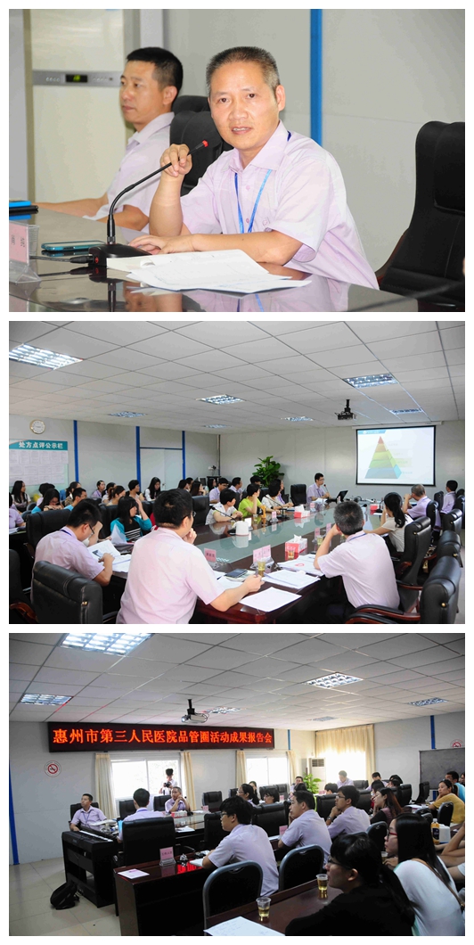 2014年10月29日,質(zhì)量管理部組織在行政5樓會議室舉行第一期品管圈成果發(fā)布及評審會,會議由肖純副院長主持,參與評審的專家由陳小凱副院長、評審辦黃碧茂主管及陳毓杰同志擔(dān)任。黨辦、監(jiān)察室工作人員負(fù)責(zé)統(tǒng)分、院務(wù)部工作人員負(fù)責(zé)會務(wù)安排及匯報時間控制。此次8個院級品管圈及2個科級品管圈(護理部推薦)共10個品管圈參與評審。