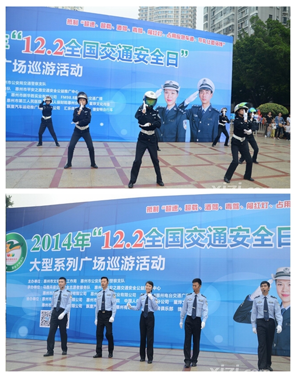 巡游結(jié)束就到了主會(huì)場的酷炫表演了,帥氣的江南女警風(fēng)、馬路天使義工們的小品、還有網(wǎng)絡(luò)爆紅的惠州交警交通安全rap show,引爆市民的“安全神經(jīng)”,嗨翻全場。
