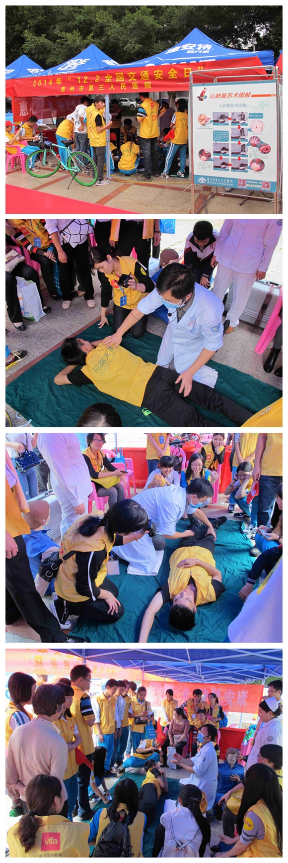 近日,公安部交管局宣布,全國民用機(jī)動(dòng)車保有量達(dá)2.64億輛。駕駛?cè)藬?shù)量破3億,居世界第一;汽車數(shù)量僅次于美國,居第二位。面對(duì)如此龐大的駕駛員數(shù)量和機(jī)動(dòng)車保有量,加上路面上越來越多的非機(jī)動(dòng)車輛,抵制七類違法、倡導(dǎo)安全文明出行越發(fā)重要。為迎接第三屆“12.2全國交通安全日”的到來,2014年11月30日,市交警支隊(duì)在市濱江公園廣場舉行了別開生面、豐富多彩的大型巡游宣傳活動(dòng),我院應(yīng)邀進(jìn)行了急救演示和為市民提供便民醫(yī)療服務(wù)。