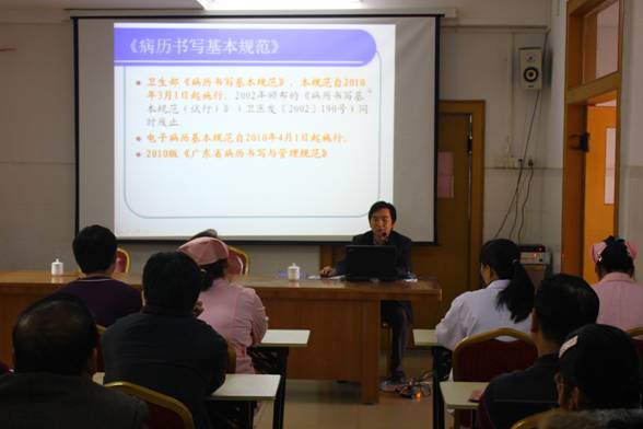 羅主任首先強(qiáng)調(diào)了病歷的價值,說明了病歷書寫規(guī)范的出處。其次從門診病歷書寫基本原則、書寫格式、書寫說明、病歷示范等幾方面進(jìn)行具體指導(dǎo)。最后用幾個因病歷書寫不規(guī)范而產(chǎn)生醫(yī)療賠付的案例說明病歷書寫的重要性。