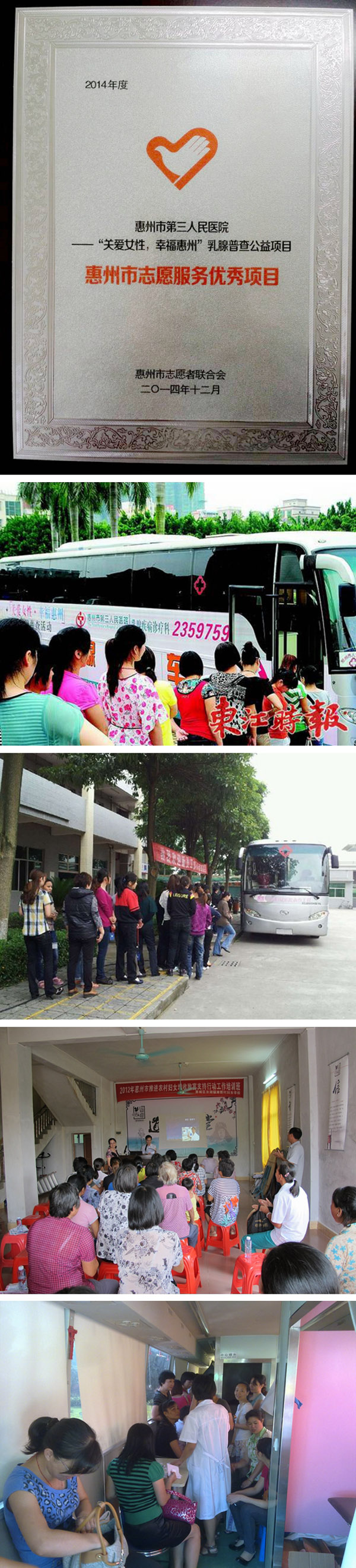2015年,“關(guān)愛女性,幸福惠州”公益項目依然會為愛前行,把普查送到群眾家門口,為她們免去路途輾轉(zhuǎn)等諸多不便,為惠州廣大女性乳房健康保駕護(hù)航。(社會醫(yī)療服務(wù)部 孟瑤)