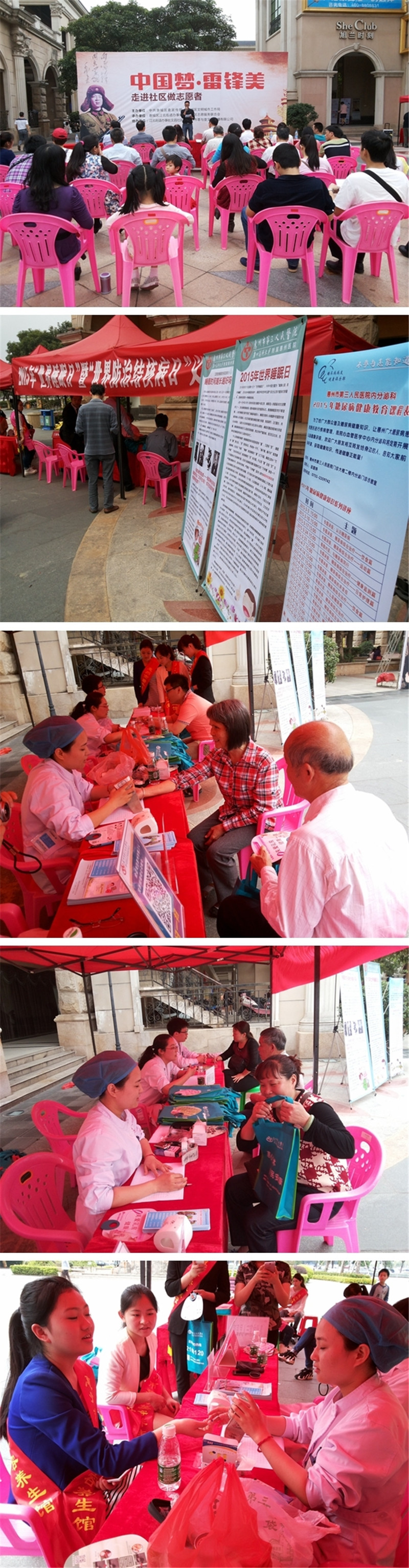 3月是學(xué)習(xí)雷鋒志愿服務(wù)月,為更好服務(wù)群眾,我院結(jié)合健康教育主題日“3·21世界睡眠日”和“3·24世界防治結(jié)核病日”,于3月21日聯(lián)合惠城區(qū)文明城市工作局在江北帝景灣小區(qū)門(mén)口開(kāi)展了“中國(guó)夢(mèng)·雷鋒美”義診咨詢(xún)活動(dòng)。