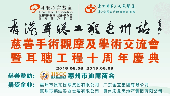 2015年5月8日上午,名醫(yī)薈萃、充滿慈善公益正能量、眾人期待已久的香港“耳聰工程”惠州站暨十周年慶典活動終于在惠州市第三人民醫(yī)院如期隆重舉行!