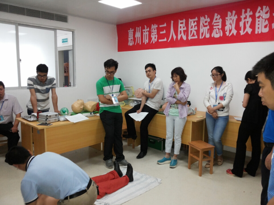 第二階段為師資培訓階段,由各臨床科室及職能部門科室各派2名代表組成醫(yī)院急救技能師資隊伍,專家組成員對師資代表進行為期2周的培訓,師資培訓共為8期,并已于5月22日完成。