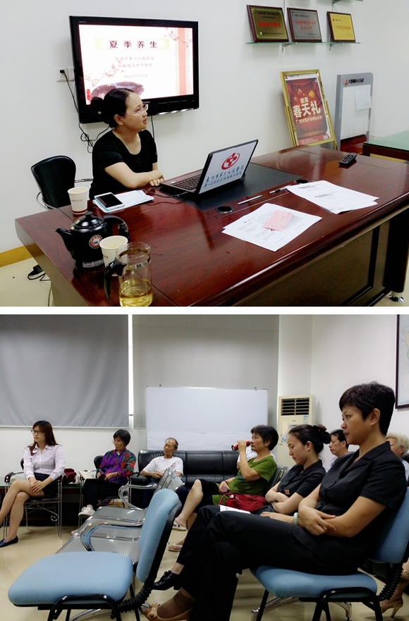 夏季是陽(yáng)氣最盛的季節(jié),氣候炎熱而生機(jī)旺盛,很多老街坊都有一套自己的夏季養(yǎng)生之道。為了更好地度過(guò)炎炎夏日,應(yīng)廣發(fā)銀行南壇支行中老年客戶提議,廣發(fā)銀行特邀我院專家為大家分享一堂夏季養(yǎng)生保健課,由門診中醫(yī)組劉敏副主任中醫(yī)師主講。