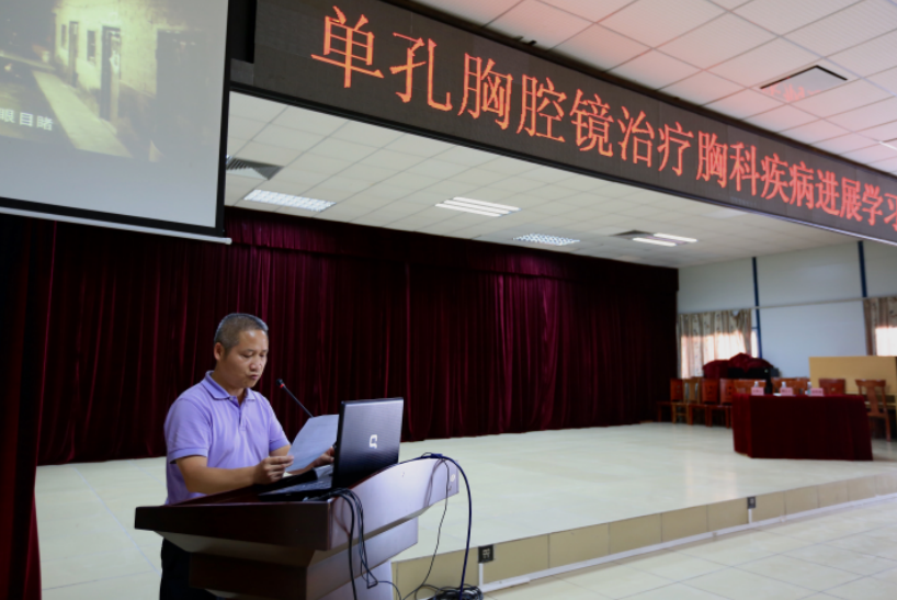 惠州市第三人民醫(yī)院副院長(zhǎng)肖純博士介紹了醫(yī)院發(fā)展情況,代表醫(yī)院對(duì)各位專(zhuān)家的蒞臨和參會(huì)者表示歡迎,隨后由心胸外科張陽(yáng)春副主任醫(yī)師講授了“單孔胸腔鏡在胸外科的應(yīng)用”,