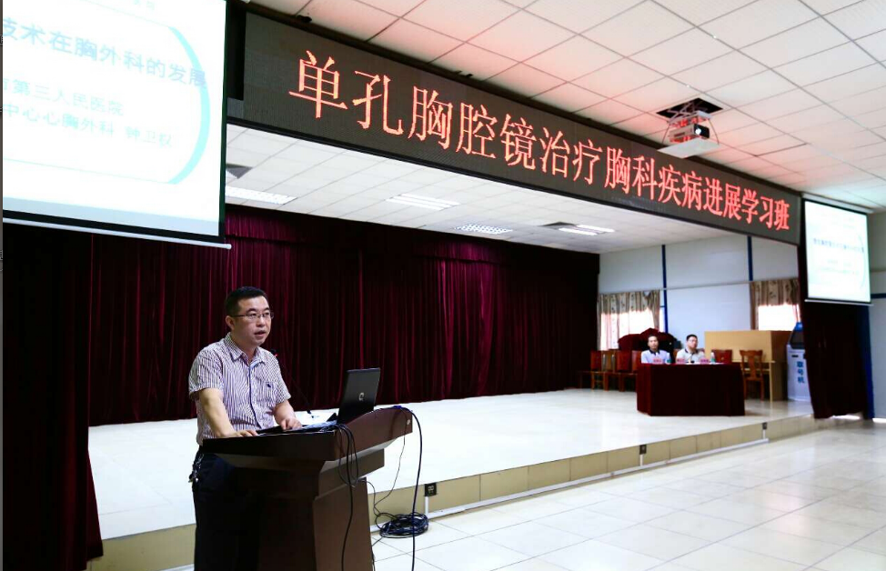 胸腔鏡技術(shù)發(fā)展迅速,是未來(lái)胸部微創(chuàng)外科的一個(gè)發(fā)展方向。為了更好地推動(dòng)這項(xiàng)技術(shù)的普及和發(fā)展,2015年6月6日,惠州市首次由我院心血管中心心胸外科舉辦的繼續(xù)醫(yī)學(xué)教育項(xiàng)目“單孔胸腔鏡治療胸科疾病進(jìn)展”學(xué)習(xí)班在我院多功能會(huì)議廳隆重舉行。