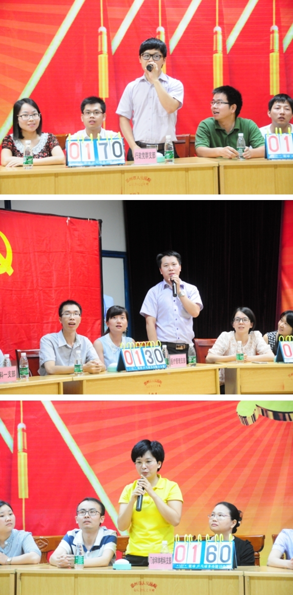 本次“學(xué)黨史·促黨建”知識競賽是我院黨委慶祝中共建黨94周年系列活動之一,醫(yī)院黨委班子成員擔(dān)任本次比賽評委。比賽共有必答題、搶答題、挑戰(zhàn)題等3個環(huán)節(jié),比賽內(nèi)容主要包括中共黨史、黨務(wù)知識、十八大、十八屆三中及四中全會相關(guān)內(nèi)容。