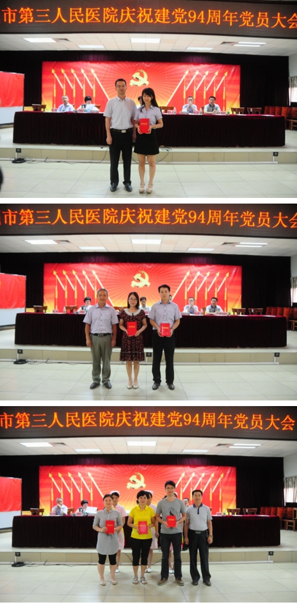 黨員大會上,醫(yī)院黨委領(lǐng)導(dǎo)為獲獎代表隊頒發(fā)證書。