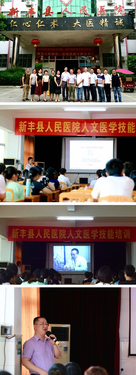 2015年7月4日,肖純副院長和工會李淑蘭主席率領我院人文醫(yī)學講師團10名講師前往韶關市新豐縣人民醫(yī)院開展人文醫(yī)學技能培訓,新豐縣人民醫(yī)院葉宗果院長非常重視和珍惜此次培訓機會,安排全院中層干部以上及臨床醫(yī)技科室醫(yī)師共100人參加,通過培訓培養(yǎng)醫(yī)務人員人文素養(yǎng),更進一步推動粵北地區(qū)人文醫(yī)學建設。