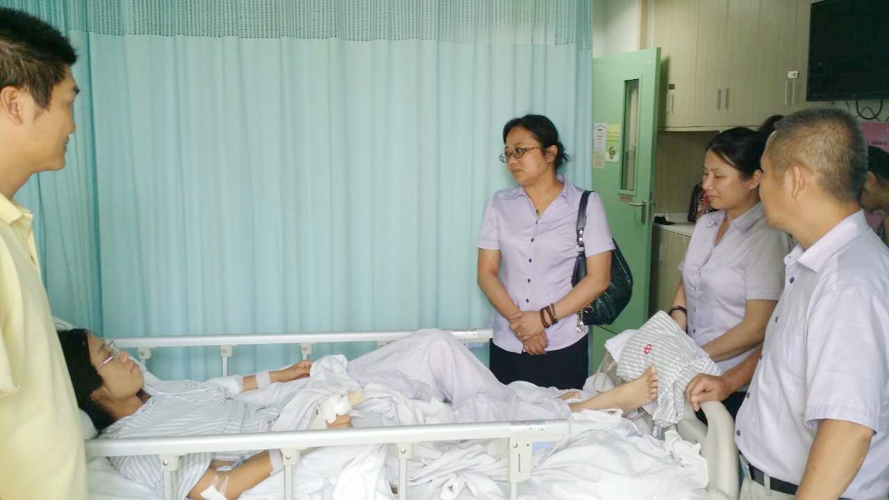 看到這起嚴重的傷醫(yī)事件就發(fā)生在惠州,惠州市第三人民醫(yī)院的同仁們也表示非常憤慨和嚴厲譴責,大家同時也非常關(guān)注歐醫(yī)生的治療狀況。7月20日, 惠州市第三人民醫(yī)院副院長肖純和醫(yī)院工會主席李淑蘭同志,代表醫(yī)院前往廣州慰問了歐醫(yī)生,并送上了慰問金,轉(zhuǎn)達了三院全體員工的關(guān)心與祝愿。