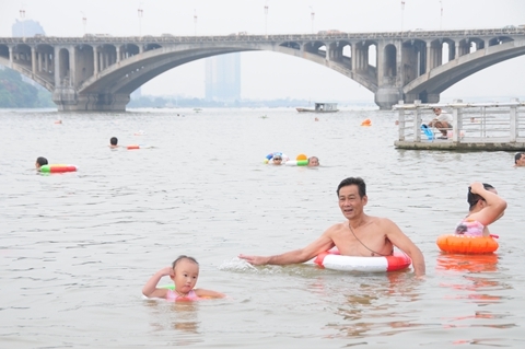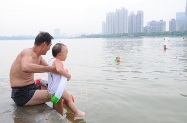東江沙公園江邊每天游泳的人都很多,其中不乏很多小孩子