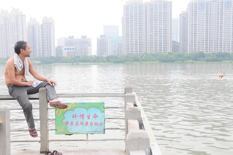老趙略顯憂傷的背影,因?yàn)樗f前幾天剛呼吁游泳安全,然后還是有人溺水了