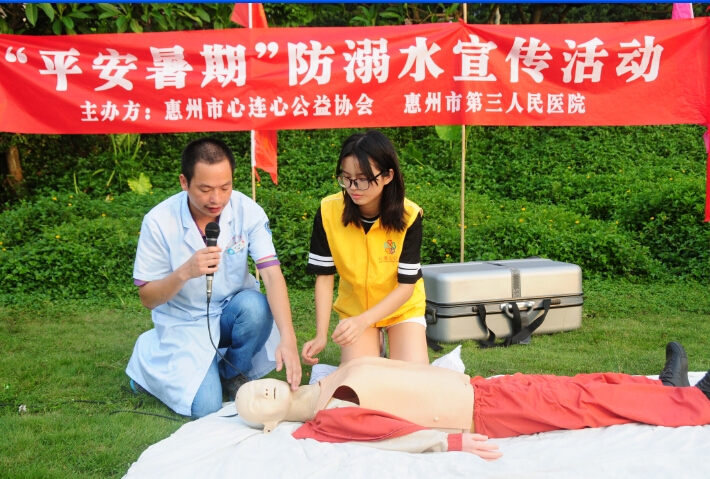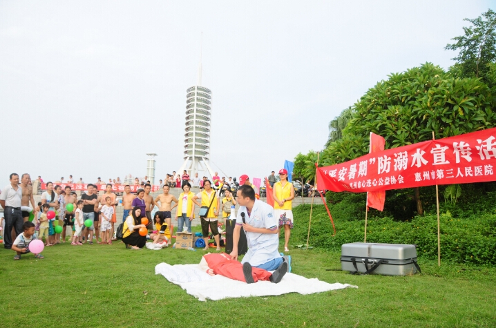 為再次呼吁市民和孩子暑期間重視游泳安全,今天(8月11日)下午5點(diǎn),惠州市第三人民醫(yī)院聯(lián)合惠州市心連心公益協(xié)會,在東江沙公園廣場舉行了“平安暑期”防溺水宣傳活動。