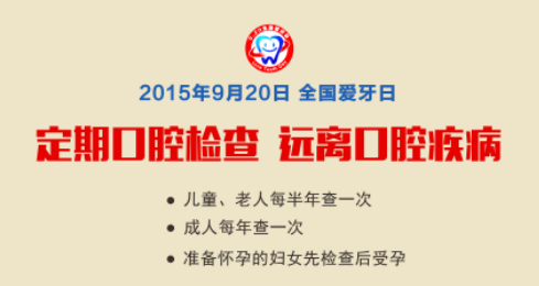 1989年,衛(wèi)生部、教委等部委聯(lián)合簽署確定每年的9月20日為全國的愛牙日。宗旨是通過愛牙日活動,來廣泛動員社會的力量,在群眾中進行牙病防治知識的普及教育,增強口腔健康觀念和自我口腔保健的意識,建立口腔保健行為,從而提高全民族的口腔健康水平。