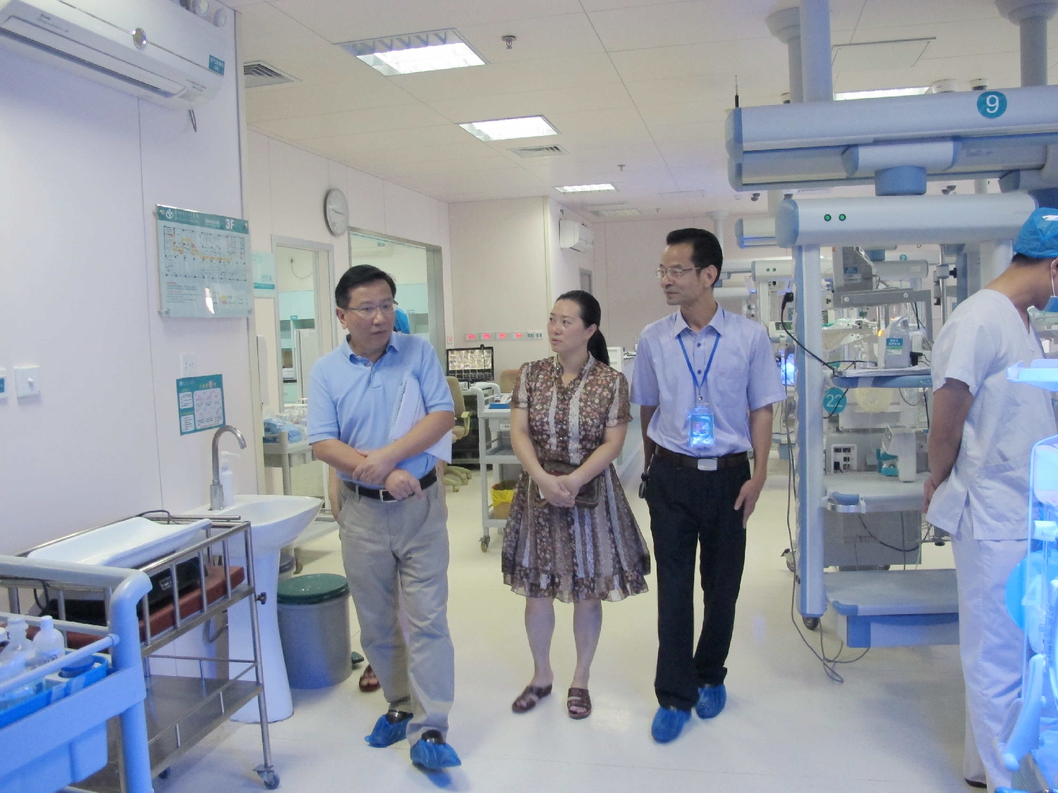 我院鄧漢東書記、醫(yī)務(wù)部簡希堯主任陪同省專家現(xiàn)場查看了產(chǎn)科產(chǎn)房、待產(chǎn)室、新生兒科、兒科等病區(qū)。(醫(yī)務(wù)部 伍媛)