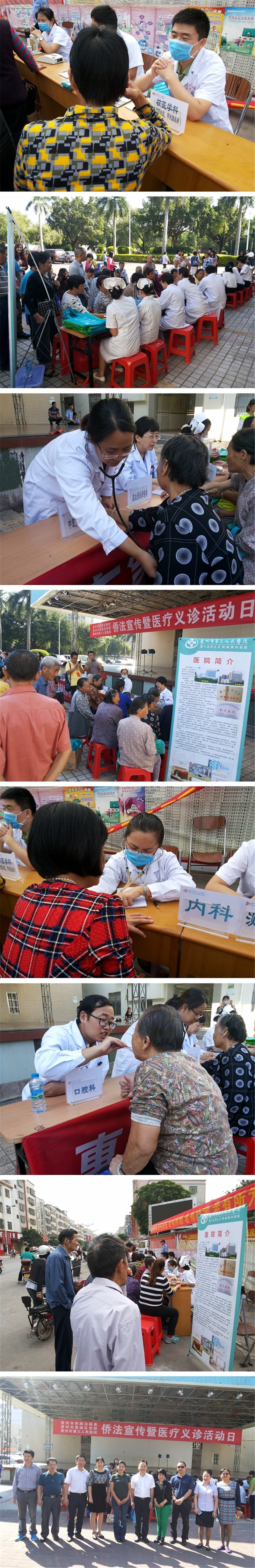 2015年10月20、21日,我院聯(lián)合惠州市僑聯(lián)法顧委、惠州市惠城區(qū)僑聯(lián)分別在三棟鎮(zhèn)集市和橋東東坡公園廣場(chǎng)開(kāi)展“僑法宣傳暨醫(yī)療義診宣傳活動(dòng)”。我院院領(lǐng)導(dǎo)一直非常重視社會(huì)公益活動(dòng),派出神經(jīng)內(nèi)科、腎內(nèi)科、核醫(yī)學(xué)科、眼科、口腔科等共計(jì)11名醫(yī)護(hù)人員參與,李淑蘭工會(huì)主席和社會(huì)醫(yī)療服務(wù)部李穎紅主任親自到現(xiàn)場(chǎng)慰問(wèn)醫(yī)護(hù)人員和參與義診活動(dòng),為現(xiàn)場(chǎng)約250名僑鄉(xiāng)、群眾免費(fèi)測(cè)血壓、提供各專(zhuān)科疾病咨詢、健康宣教等,得到現(xiàn)場(chǎng)群眾歡迎。
