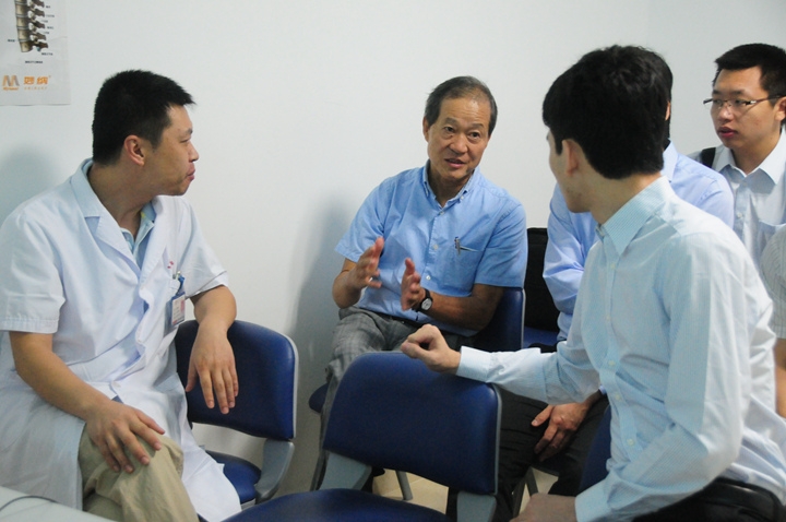 長谷川教授(左二)與武明鑫主任(左一)討論病歷