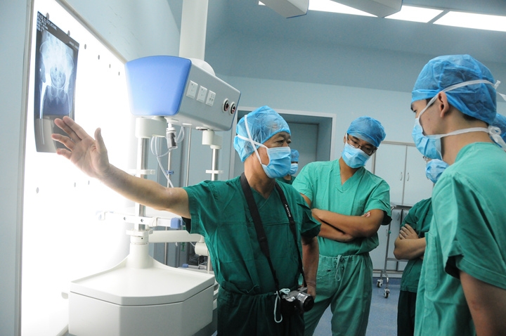 今日(1023日)上午,日本名古屋大學醫(yī)學部長谷川教授團隊一行參觀了三院骨科病區(qū)、手術(shù)室、重癥監(jiān)護室、醫(yī)學影像科、介入診療中心、心血管醫(yī)學中心病區(qū)。在手術(shù)室,長谷川教授的學生與三院骨科武明鑫主任共同為患者進行了髖關(guān)節(jié)手術(shù),長谷川教授對三院骨科手術(shù)水平和技術(shù)發(fā)展給予了充分肯定,對醫(yī)院的發(fā)展和與醫(yī)院的合作前景表示充滿信心。
