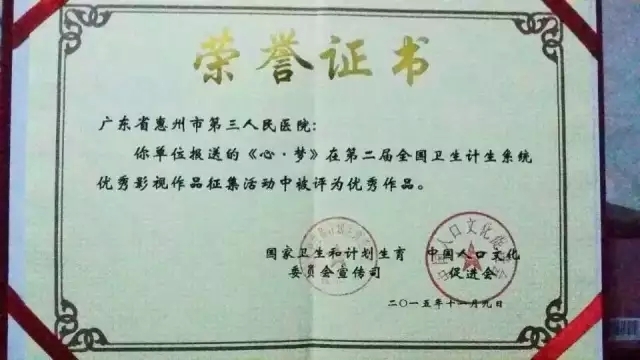 其中,惠州市第三人民醫(yī)院選送的微電影微《心·夢》成功入選優(yōu)秀影視作品。