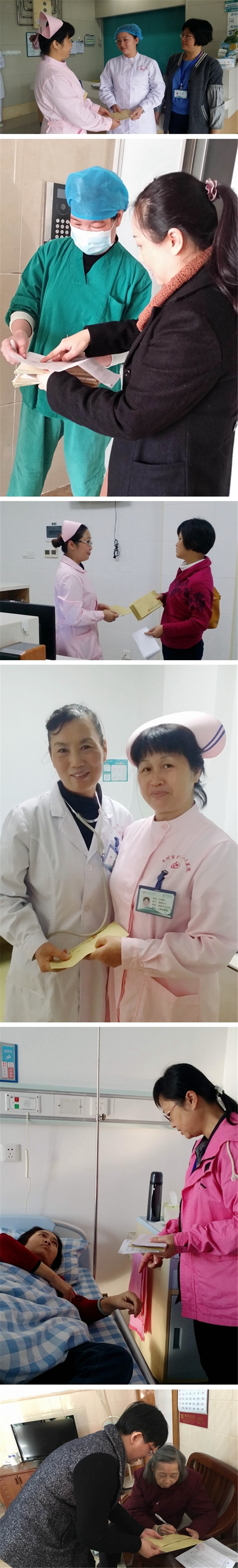 從2016年1月11日起,工會(女工)委員分批到臨床一線、到患重病職工家里進行慰問活動,走訪了退休職工、困難職工(含病休)、單親母親、勞模及退休老領導共91人,送上慰問金5.46萬元。