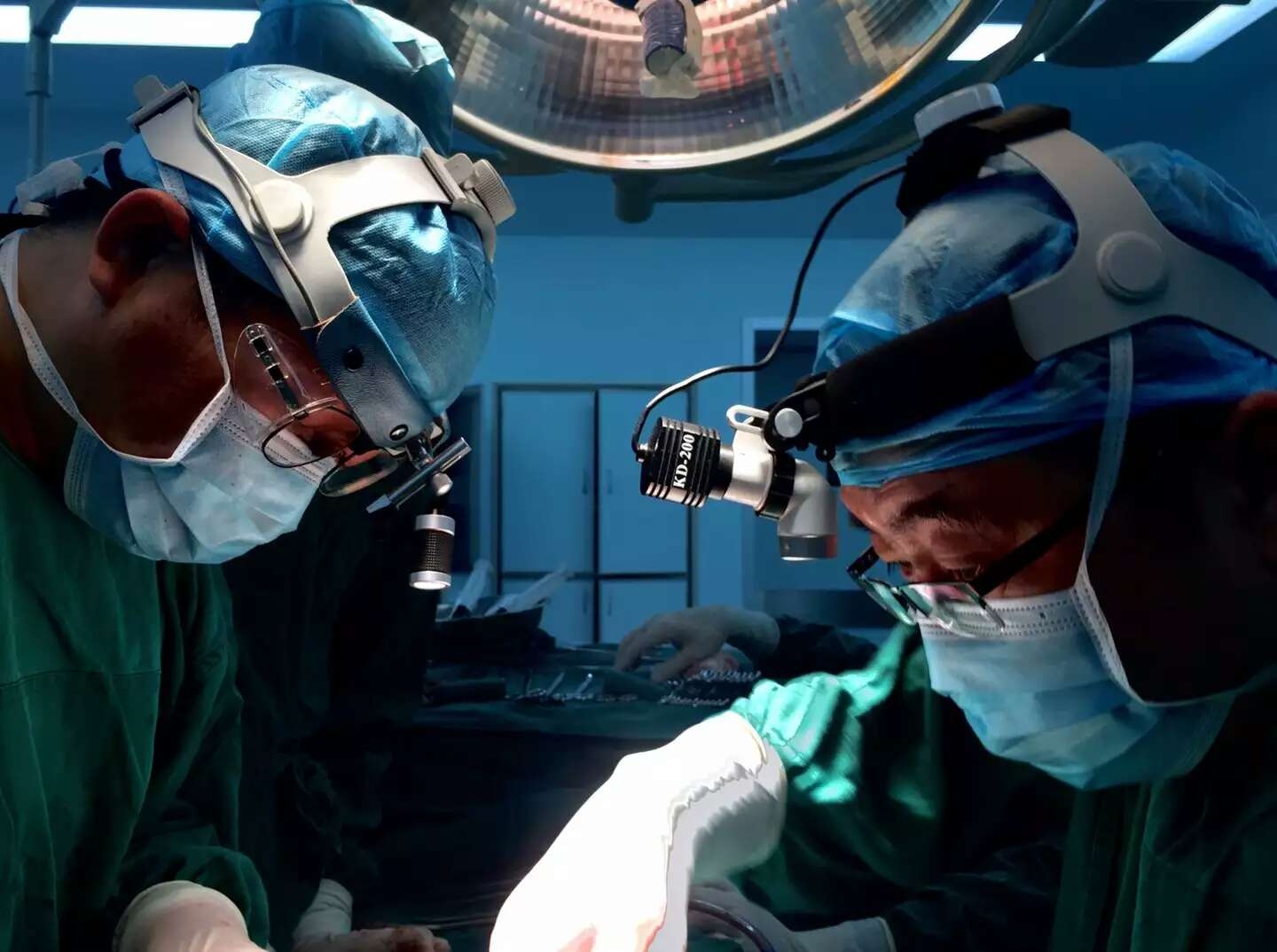 鐘衛(wèi)權(quán)主任和張陽(yáng)春醫(yī)生為患兒手術(shù)中(圖/李玉忠 攝)