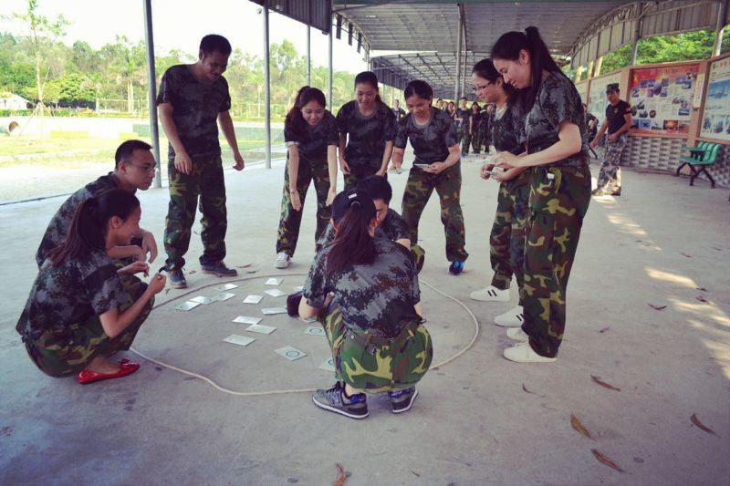 就在第一隊在進(jìn)行“急速60秒”的時候,第二隊學(xué)員在野戰(zhàn)場地開始進(jìn)行“真人CS野戰(zhàn)”活動,教官將第二隊學(xué)員分成了“紅軍”和“藍(lán)軍”2個小隊進(jìn)行叢林對抗賽,第一輪是“殲滅戰(zhàn)”,2個隊伍需要從各自的基地出發(fā)向?qū)Ψ交剡M(jìn)攻,首先殲滅對方隊伍的獲得勝利,戰(zhàn)斗開始前2個隊伍有3分鐘的時間在各自基地商量作戰(zhàn)方案,這個時候就很考量各自隊伍“首長”的個人能力了,如何根據(jù)戰(zhàn)場地形和自己戰(zhàn)士及裝備情況制定合理的作戰(zhàn)方案,如何鼓舞自己的戰(zhàn)士讓他們擁有必勝的信念和對自己隊伍的強(qiáng)烈榮耀感,發(fā)揮每個人每件裝備的特長。戰(zhàn)斗開始,兩隊的戰(zhàn)士們各自占據(jù)有利地形展開激烈的對拼,開始戰(zhàn)士們經(jīng)驗不足,沒有注意相互交叉掩護(hù),戰(zhàn)斗很快就結(jié)束了,藍(lán)軍以微弱的優(yōu)勢獲得了勝利。接著雙方交換場地進(jìn)行接下來的“斬首戰(zhàn)”,顧名思義就是戰(zhàn)斗以殲滅敵方“首長”的一方獲得勝利。有了殲滅戰(zhàn)的經(jīng)驗,兩隊的戰(zhàn)斗力都得到了較大的提高,特別是紅軍,利用地形優(yōu)勢形成交叉火力的防守陣地很好的阻擊了藍(lán)軍的進(jìn)攻,很快獲得了人數(shù)上的優(yōu)勢,不過隨后藍(lán)軍及時調(diào)整了進(jìn)攻策略,打起了防守反擊戰(zhàn),戰(zhàn)斗進(jìn)入僵持階段。這時紅軍的一位女戰(zhàn)士,忽然沖出掩體,冒著槍林彈雨直沖藍(lán)軍基地,與藍(lán)軍基地的“首長”和保衛(wèi)戰(zhàn)士展開激烈交火,雖然最終“壯烈犧牲”但借著這次突進(jìn)擊斃“首長”2次(按照游戲規(guī)則,每位戰(zhàn)士都有2次復(fù)活機(jī)會),,一展巾幗風(fēng)采,極大地鼓舞了紅軍的士氣最終紅軍取得了戰(zhàn)斗的勝利。這個簡單刺激的游戲很好地發(fā)掘了學(xué)員們的潛力,當(dāng)大家身心投入游戲的時候,才發(fā)現(xiàn)自己的能力可能比想象的大得多,也培養(yǎng)了學(xué)員們在團(tuán)隊中的執(zhí)行力和服從性,激發(fā)了大家的集體榮譽(yù)感,增進(jìn)的大家的溝通拉近了彼此的距離。