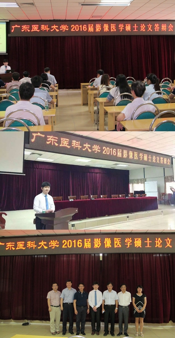 2016年62日上午,廣東醫(yī)科大學2016屆醫(yī)學影像學專業(yè)研究生畢業(yè)論文答辯會在多功能會議室隆重舉行。答辯委員會由廣東醫(yī)科大學附屬醫(yī)院夏俊教授、中山大學附屬第一醫(yī)院楊建勇教授、中山大學附屬第二醫(yī)院許林峰教授及我院心胸外科鐘衛(wèi)權(quán)主任醫(yī)師、醫(yī)學影像科郝風華副主任醫(yī)師組成,夏俊教授任答辯主席。