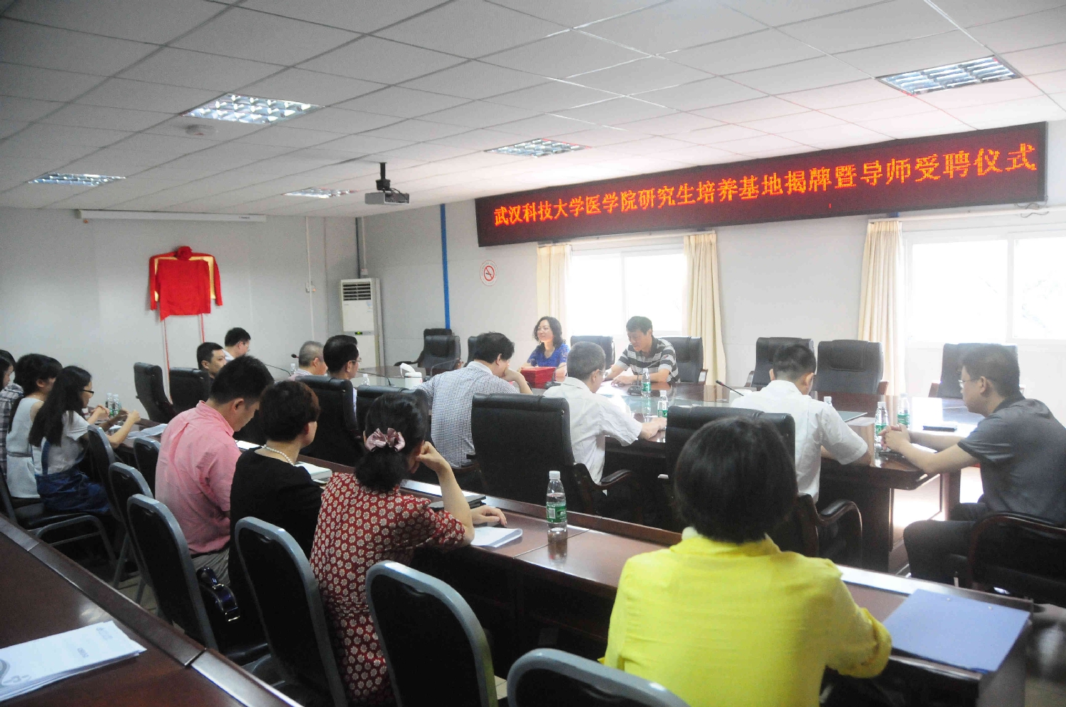 2016年5月29日上午,我院在行政樓會議室隆重舉行“武漢科技大學(xué)醫(yī)學(xué)院研究生培養(yǎng)基地”揭牌暨導(dǎo)師受聘儀式。醫(yī)學(xué)院相關(guān)領(lǐng)導(dǎo)及我院領(lǐng)導(dǎo)班子成員出席了儀式,我院受聘的10名研究生導(dǎo)師及首屆武漢科技大學(xué)醫(yī)學(xué)院在職研究生參加了會議。