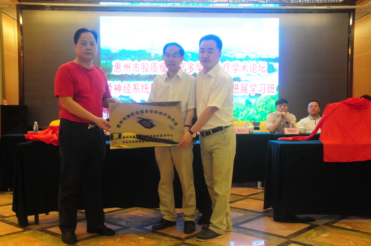 大會首先舉行了兩個合作項目的揭牌儀式:一是惠州市第三人民醫(yī)院與中山大學腫瘤防治中心合作,成立“惠州市腦膠質瘤診療協(xié)作組”;二是惠州市第三人民醫(yī)院與廣東三九腦科醫(yī)院合作,成立“惠州市神經(jīng)腫瘤放療協(xié)作中心”。