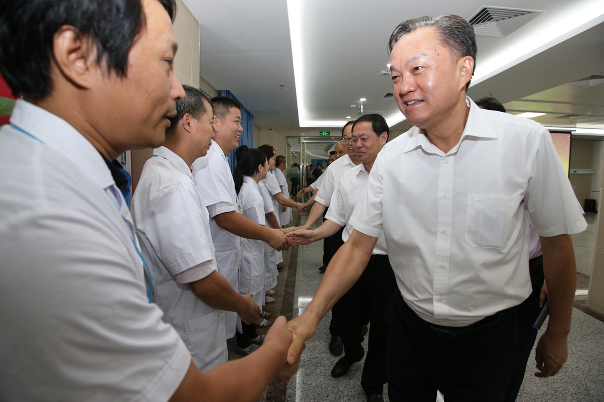 2016年8月18日下午,惠州市委陳奕威書記率市四套班子、相關(guān)職能部門負(fù)責(zé)人及各縣區(qū)四套班子近40人蒞臨惠州市第三人民醫(yī)院調(diào)研工作。主要就我院民生工程綜合大樓投入使用的驗(yàn)收、惠城區(qū)智慧醫(yī)療和重離子項(xiàng)目籌建等三項(xiàng)工作進(jìn)行調(diào)研。