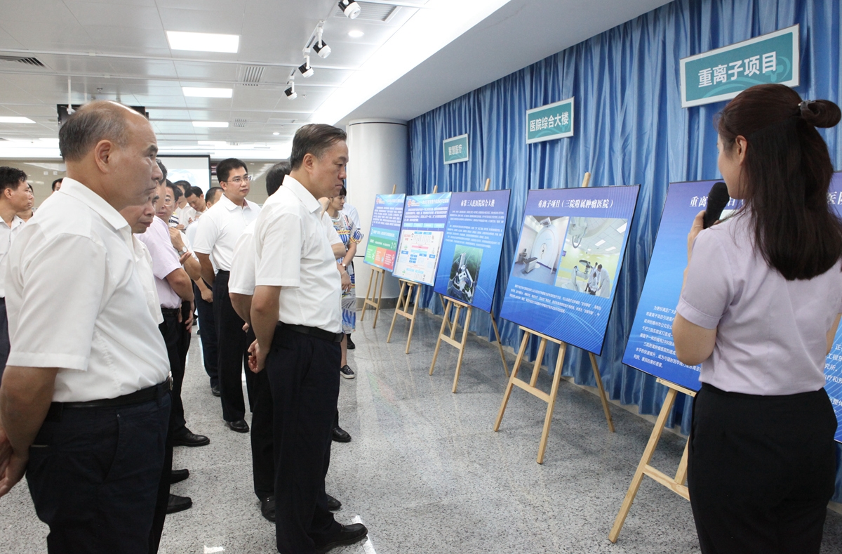 市、區(qū)相關(guān)領(lǐng)導(dǎo)在三院馬顯力院長(zhǎng)、鄧漢東書記的陪同下,觀看了我院綜合大樓建設(shè)情況和學(xué)科發(fā)展視頻,現(xiàn)場(chǎng)觀摩了我院與橋東社區(qū)遠(yuǎn)程“遠(yuǎn)程影像中心”互連互通及“互聯(lián)網(wǎng)+”醫(yī)療服務(wù)等演示。隨后,市、區(qū)相關(guān)領(lǐng)導(dǎo)還聽取了世界領(lǐng)先的重離子治療項(xiàng)目匯報(bào),并親切接見了我院博士專家團(tuán)隊(duì)。