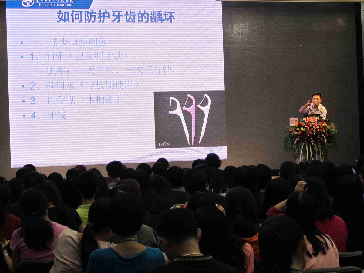 2016年9月21日晚,惠州市第三人民醫(yī)院口腔科盧林主任應邀走進旭日集團,為大家分享口腔保健那些事兒,383名員工報名參加了此次講座。