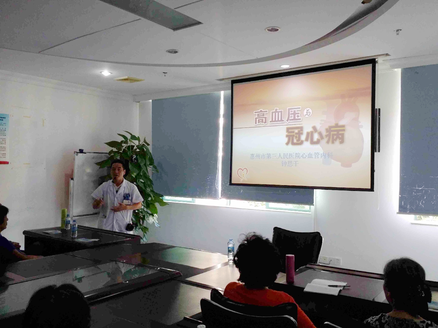 為普及胸痛預(yù)防意識(shí),減少心血管事件的發(fā)生,10月28日,市三院心血管醫(yī)學(xué)中心鐘思干副主任走進(jìn)東湖社區(qū),為老街坊們講講高血壓與冠心病的關(guān)系。
