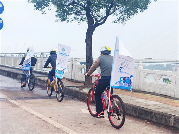 11月11日上午,16名醫(yī)務工作者開始了騎行宣傳活動,穿行過紅花湖,一路由惠州市中心人民醫(yī)院、惠州市第一人民醫(yī)院、惠州市第三人民醫(yī)院、惠州市中醫(yī)院最后到博羅人民醫(yī)院,車尾綁著糖尿病健康宣傳內(nèi)容的旗子在風中醒目地飄揚,吸引了不少市民駐足觀看。