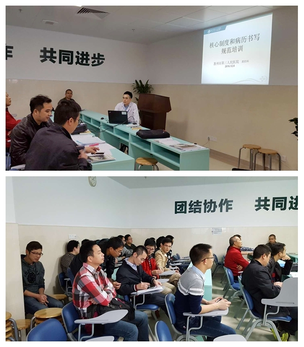 EICU作為我院新開科科室,為規(guī)范科室醫(yī)生病歷書寫與醫(yī)療核心制度執(zhí)行,2016126日下午15:00,醫(yī)務(wù)部質(zhì)控科對(duì)EICU全體醫(yī)師進(jìn)行《核心制度和病歷書寫規(guī)范培訓(xùn)》。