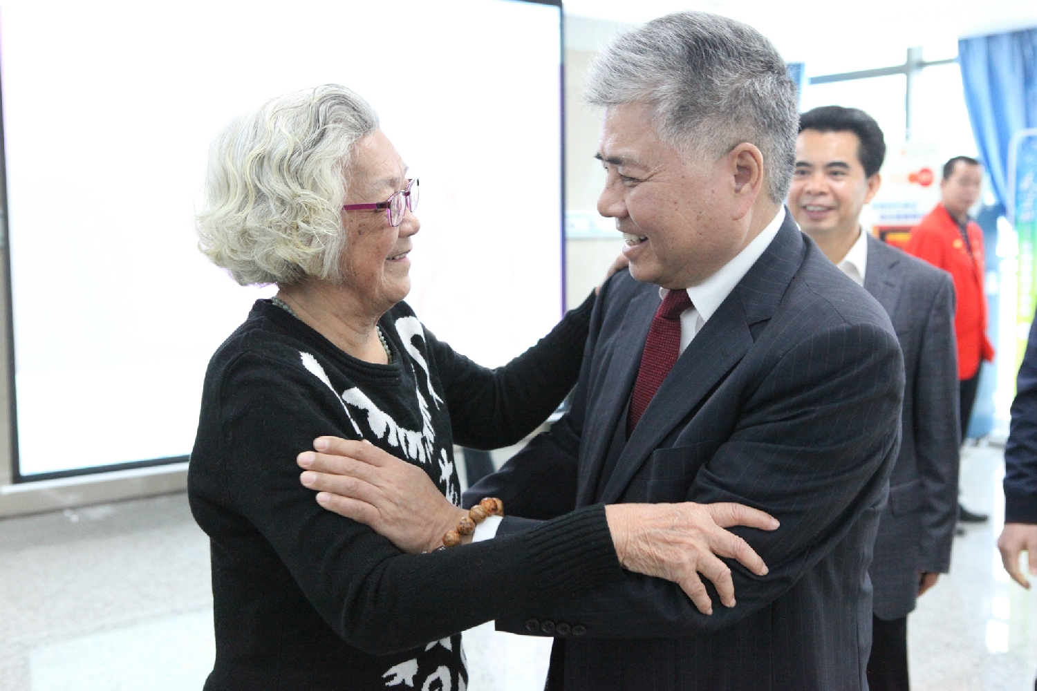 楊勛先生和張素梅老師再次重逢,彼此都非常激動和高興,楊勛先生尊師重道、關心教育事業(yè)一直為世人所稱道