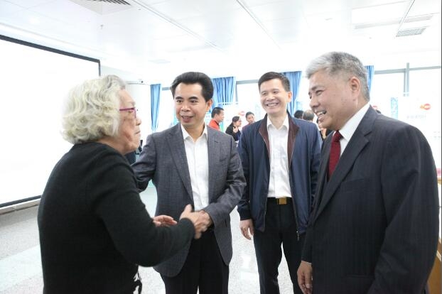 揭幕儀式結束后,各位慈善家參觀了我院綜合大樓,并在急診醫(yī)學中心二樓召開了座談會。座談會上,93歲高齡的張素梅老師作為患者代表發(fā)言,張素梅女士是楊勛先生的老師,也是30多年來見證并受益于三院發(fā)展的一名病人,她一直以來都非常關心三院發(fā)展和感謝三院的醫(yī)護人員對她的幫助。